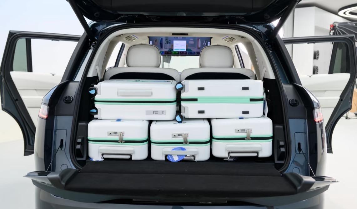 領克900的空間優勢遠不止這些。它能夠輕松裝下全家的行李,配備了三排座椅滑軌,巧妙地平衡了三排乘客的乘坐舒適性與后備箱的使用靈活性。具體而言,第三排座椅支持前后125mm的調節,既可以前后滑動以獲取更大的進深空間,又能在不放倒座椅的情況下,輕松容納大尺寸行李箱、嬰兒車等物品。實測數據表明,后備廂空間表現卓越,寬度為1120mm、高度為795mm、深度為610mm(從尾門到座椅靠背),若將三排座椅放倒,深度可達1150mm。當全家6人自駕出游時,可以同時收納1個28寸行李箱、1個24寸行李箱和2個20寸行李箱,而且第三排乘客還能擁有13cm的舒適腿部空間。