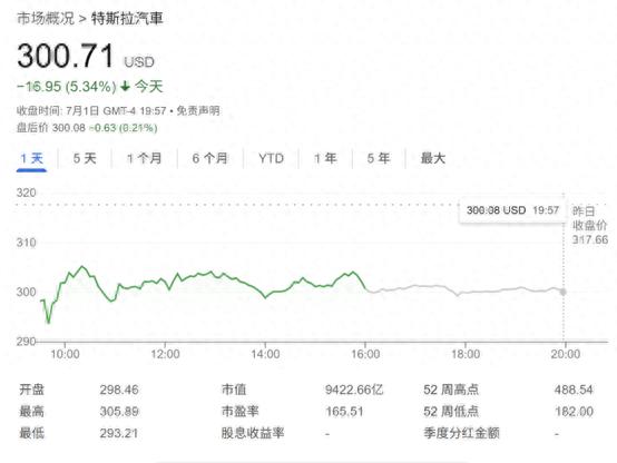 特斯拉股價(jià)周二大跌逾5%,收于300.71美元左右,因其CEO馬斯克再次與美國(guó)總統(tǒng)特朗普爆發(fā)沖突,引發(fā)了投資者對(duì)該車企前景的疑慮。