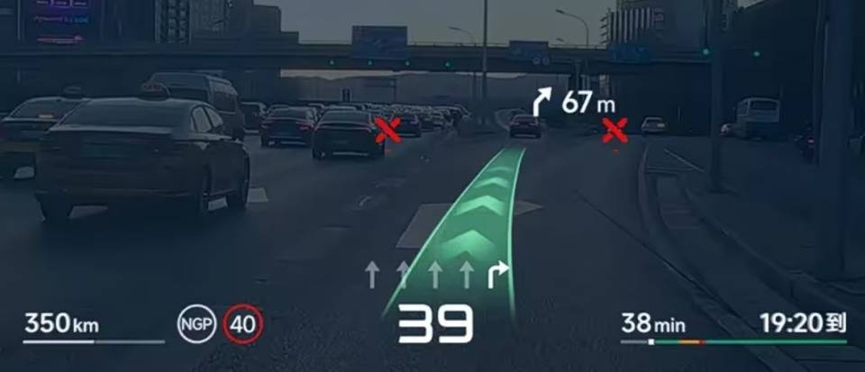 智能座艙部分,這兩臺都有著不錯的亮點。小鵬G7這次聯手華為打造了成像尺寸達87英寸的追光全景AR-HUD,顯示的信息清晰又精致,尤其是車道引導,在新算法的幫助下會根據實時路面變化而變化。