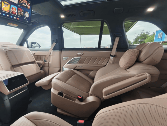 三排最大調節角度為38度,座椅不會很薄,而且承托力度相當足,而且杯架以及充電口都給到了,還有一個座椅加熱功能。