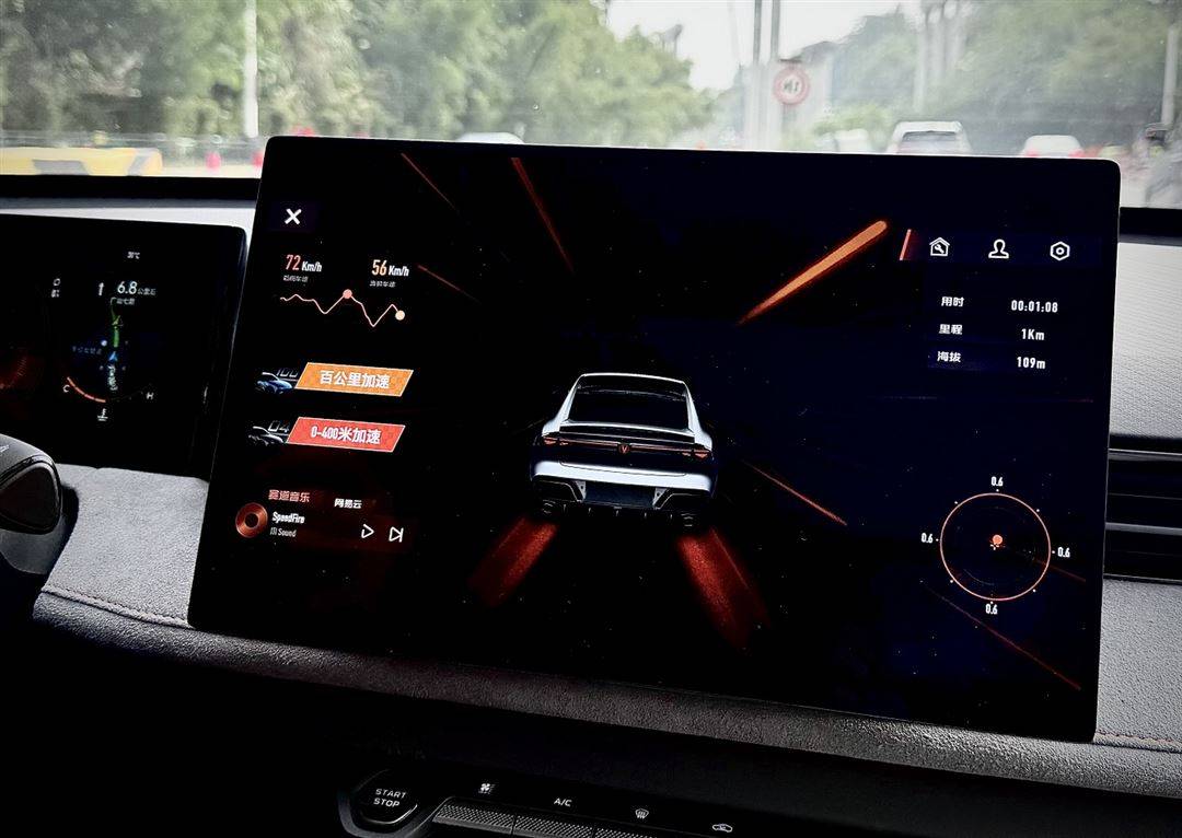 長安第三代UNI-V賽道模式集成Drive Mode 按鍵,可以一鍵解鎖SUPER RACE 3.0賽道模式,聯動中控大屏沉浸式主題效果,儀表聯動實時數據,配合可變排氣聲浪、專屬賽道音樂,以及車輛動態特效與燈光系統協同交互,極具張力的競技氛圍拉滿。