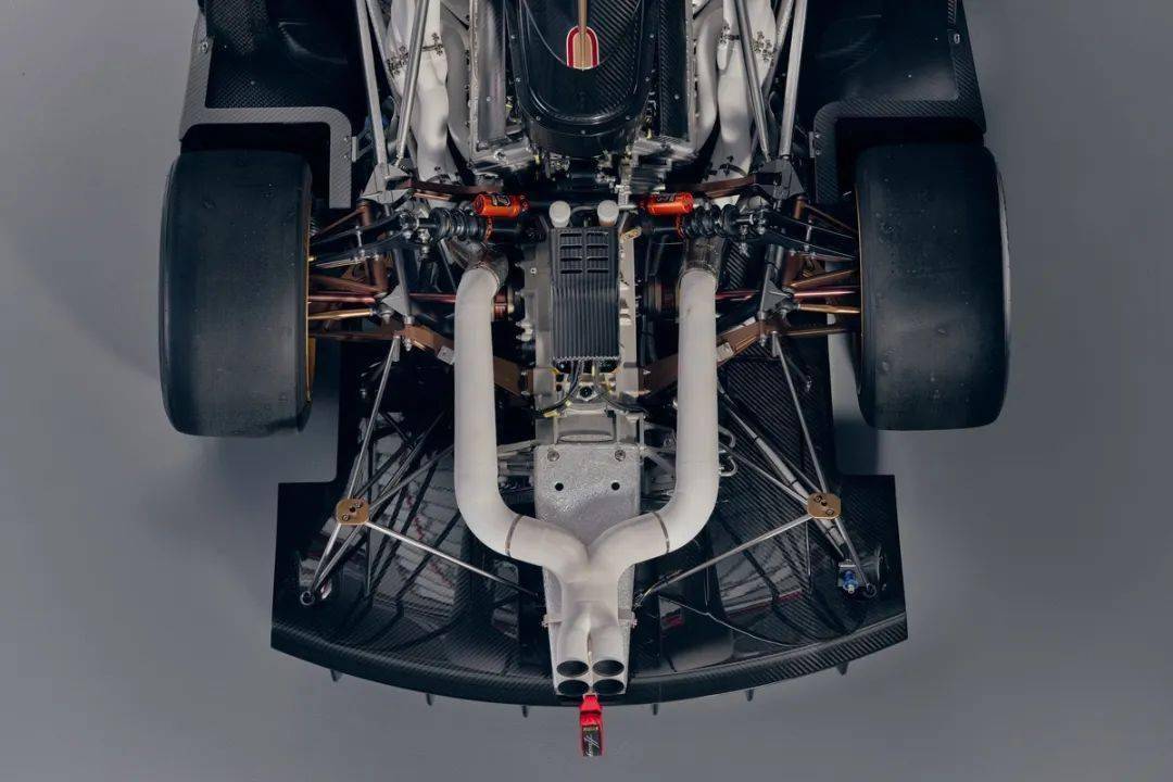 帕加尼Huayra R的四出排氣系統采用陶瓷涂層英高鎳合金(Inconel 625/718),厚度僅為普通車型的1/3,模擬90年代F1賽車的狂暴聲浪(可選裝消音器滿足賽道噪音限制)。帕加尼Huayra R采用碳鈦合金單體車艙結構,整合座椅的碳纖維單體殼,采用Carbo-Titanium HP62-G2等航空材料,抗扭剛性提升16%,抗彎剛性增加51%,整車干重僅1,050公斤。
