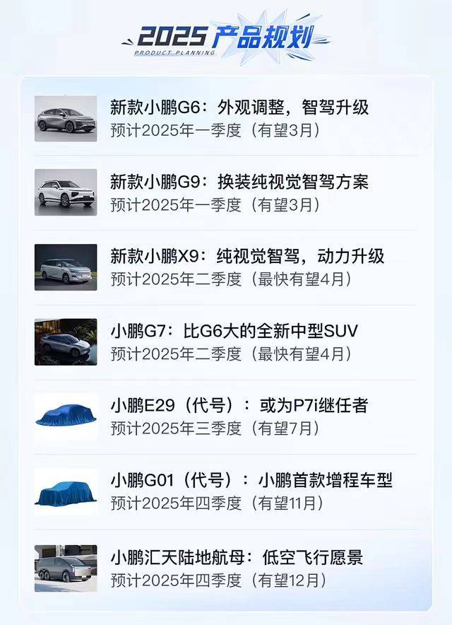 比如小鵬汽車,2025年,小鵬汽車計劃推出多達7款新車型和改款車,在10-30萬元的市場布局產品。
