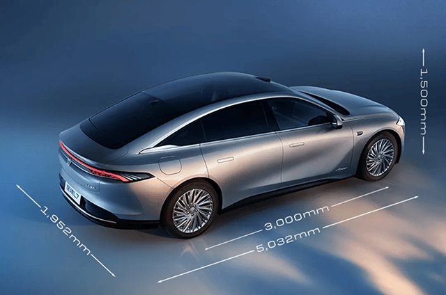 至境L7的尺寸已經(jīng)固定,車長(zhǎng)5032毫米、車寬1952毫米、車高1500毫米,軸距3000毫米。