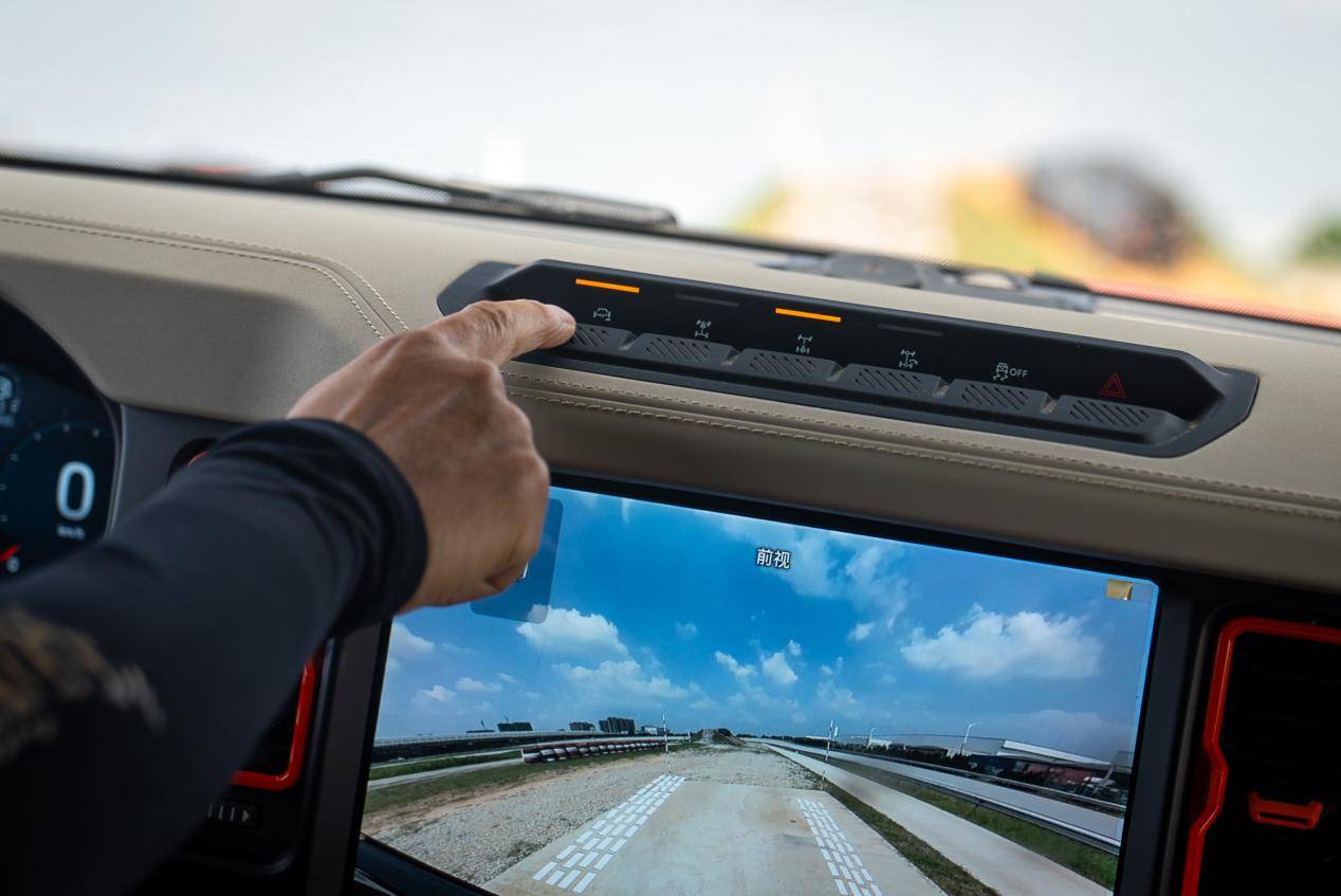 智能輔助功能的加入,則讓模塊化設(shè)計的 “易用性” 再上臺階。GOAT 全地形系統(tǒng)提供 7 種模式,360° 全景影像與越野蠕行(2km/h 低速設(shè)定)全系標(biāo)配,即便新手也能從容應(yīng)對復(fù)雜路況。可斷開防傾桿的邏輯尤為智能:32km/h 以下可隨時激活,高速時自動復(fù)位,無需停車操作,這種 “低速靈活、高速穩(wěn)定” 的設(shè)定,比早期純機(jī)械結(jié)構(gòu)更適應(yīng)全場景需求。