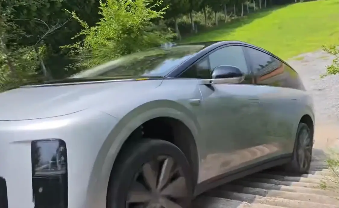 為了進一步證實理想i8的通過性優勢,李想附上了一段理想i8爬階梯的測試視頻。視頻中,一輛理想i8在多層階梯砂石路段模擬越野場景,車輛輕松應對。