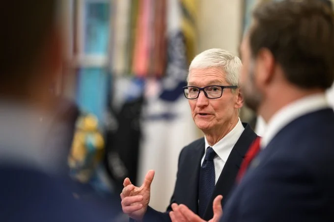 美國總統特朗普、蘋果公司CEO庫克及美國副總統萬斯