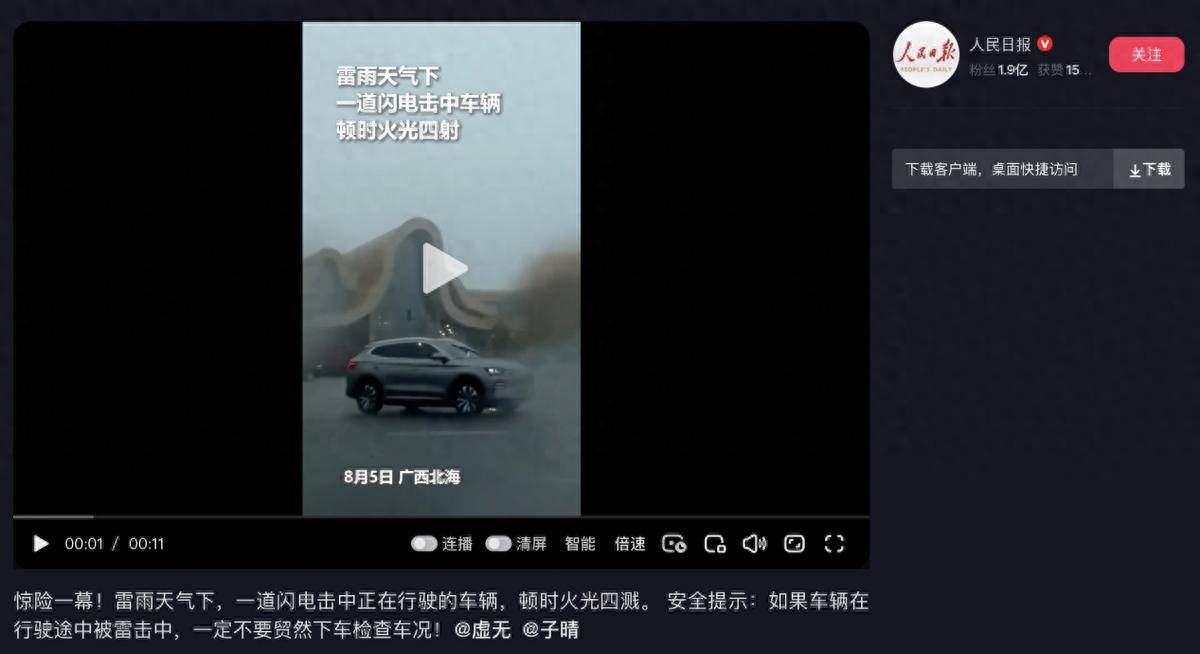 日前,一輛緩慢行駛的比亞迪宋PLUS EV在廣西北海鐵山港服務區內,因雷暴天氣,連續三次遭遇閃電直擊的新聞上了熱搜,好在的是,此次驚險一幕并沒有對車內女性駕駛員造成傷害,并已按原計劃繼續廣西旅程。