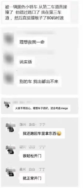 “理想救我一命,說實話,別的車我出都出不來。”事故車主在用戶群內(nèi)描述逃生過程時如此表示。