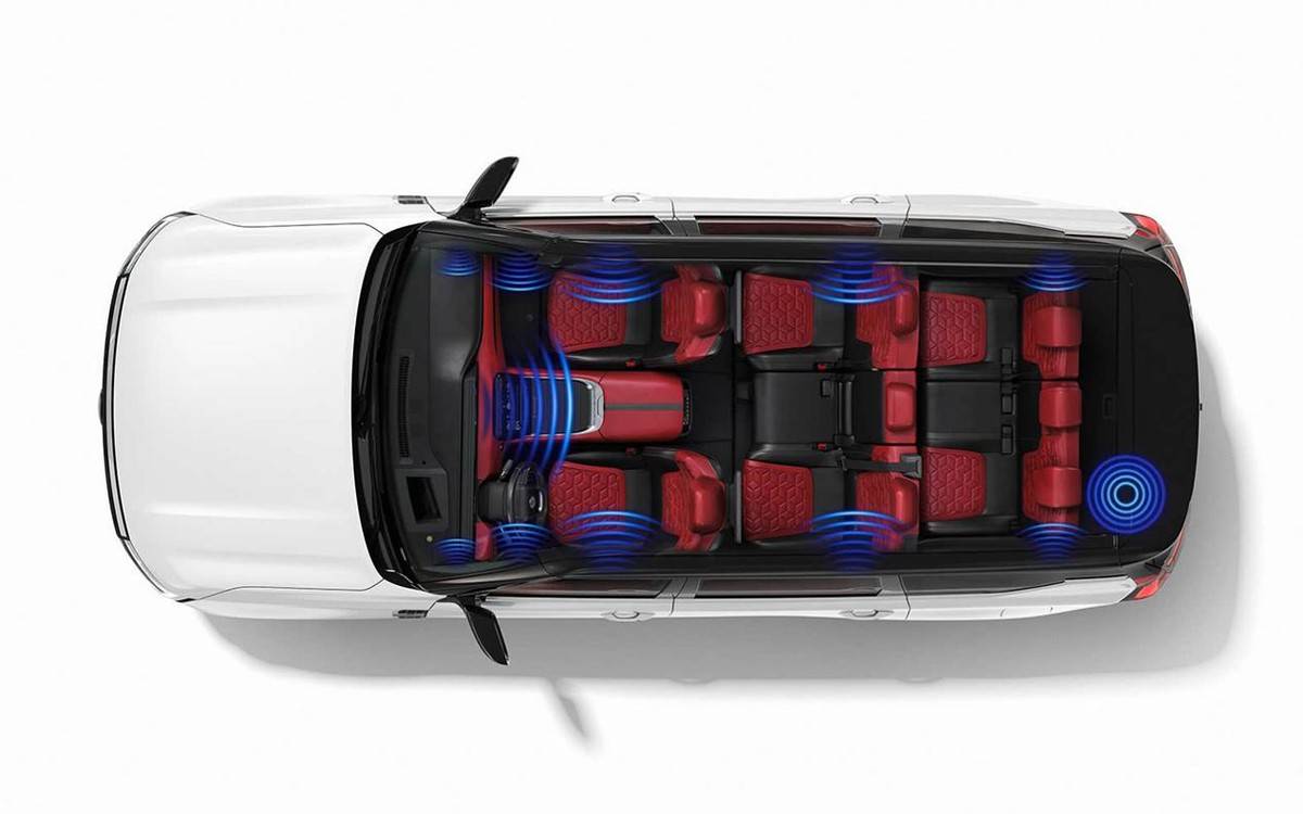 尺寸上,新車長寬高分別為5222/2203/1804mm,軸距為3094mm,標準是標準的大型SUV身材。空間的話,新車會采用2+2+2的三排大6座空間布局,其中前排座椅將配備加熱、通風和按摩,并還會有五區空調控制系統和23揚聲器的AKG Studio音響系統。后備廂容積為430升,第三排放倒后可增加到1218升,二三排全部放倒后則可達到2271升,整個后備廂容積可以說是非常大。