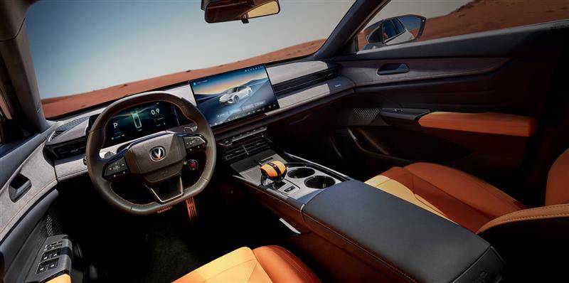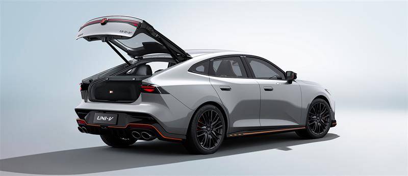 長安UNI-V作為第三代車型,在顏值上相較于二代稍有收斂,整體風(fēng)格也更接近新能源車型,但凌厲的線條以及開張的包圍設(shè)計(jì)與四出排氣,搭配尾部可升降尾翼和掀背式尾門,依舊是非常吸引年輕人。尺寸數(shù)據(jù)為4740/1838/1430mm,軸距為2750mm,稍優(yōu)于領(lǐng)克03,車身高度更低視覺上更加低趴。后備箱常規(guī)容積為465L,放倒后排靠背后可拓展至1110L。車內(nèi)設(shè)計(jì)大變,采用當(dāng)前主流的懸浮式大屏幕,整體依舊為極簡設(shè)計(jì)風(fēng)格,屏幕尺寸提升至14.6英寸,使用上會更加便利。座椅部分內(nèi)部填充物適中,相較于領(lǐng)克03會柔軟許多。