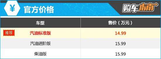 售價為14.99萬元的汽油標準版是全系最入門的版本,雖說是最低配,但像是自適應遠近光、車頂行李架、固定車側腳踏板、前排座椅加熱等實用功能均有配備,科技感十足的雙聯屏也同樣沒有缺席,并且還標配了豐富的主/被動安全配置,可謂“入門即高配”。因此,汽油標準版是本次的推薦車型。