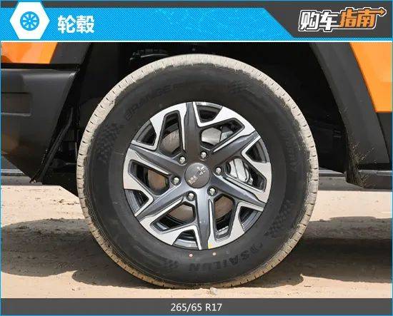 輪轂方面,2026款北京越野BJ40燃油全系標配17英寸雙色輪轂,視覺效果不錯,與之匹配的輪胎規格為265/65 R17。