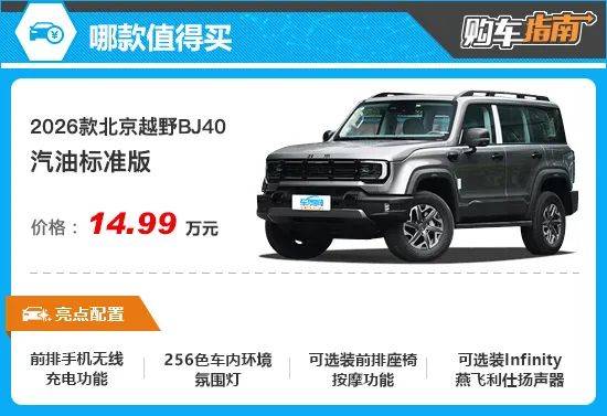 因此,對于2026款北京越野BJ40燃油的購買建議,重點推薦汽油標準版,消費者在購買時可優先考慮。