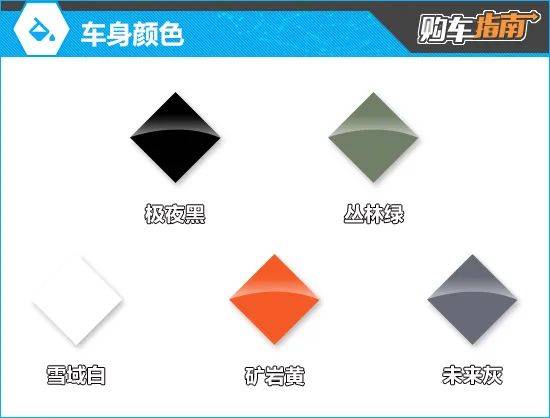車身顏色方面,2026款北京越野BJ40燃油共提供5種顏色可選。其中,我個人推薦叢林綠,是一個時尚且不失越野氣息的顏色。