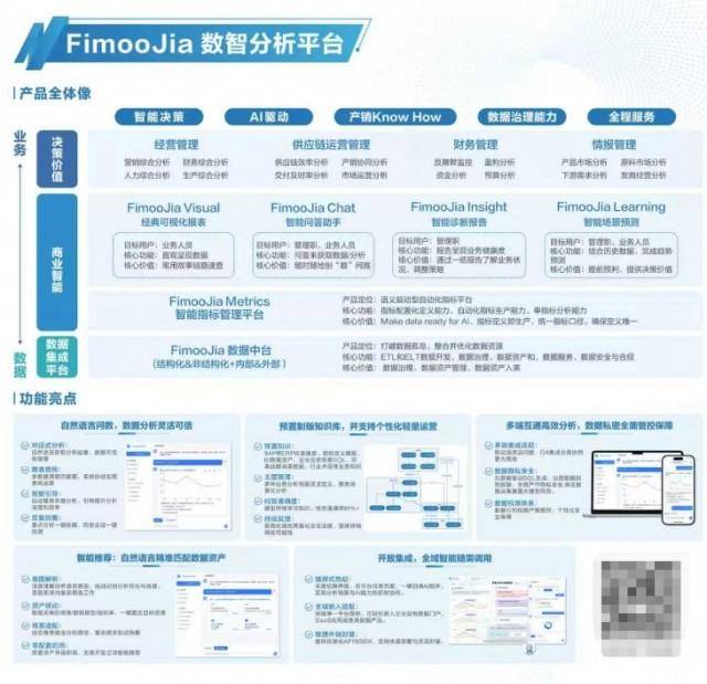 FimooJia數(shù)智分析平臺(tái)解決方案以“Data+AI”重塑數(shù)據(jù)分析“新范式”,深度釋放銷售采購、財(cái)務(wù)等領(lǐng)域的數(shù)據(jù)“新動(dòng)能”,用精準(zhǔn)決策護(hù)航企業(yè)長(zhǎng)遠(yuǎn)增長(zhǎng)。FimooJia數(shù)智分析平臺(tái)支持自然語言問數(shù),提供靈活可信的數(shù)據(jù)分析;預(yù)置制販知識(shí)庫,支持個(gè)性化輕量運(yùn)營(yíng);實(shí)現(xiàn)多段互通高效分析,全面管控保障數(shù)據(jù)私密性;具備智能推薦功能,通過自然語言精準(zhǔn)匹配數(shù)據(jù)資產(chǎn);并可開放集成,隨需調(diào)用全域智能資源。該解決方案遵循松下制造業(yè)經(jīng)營(yíng)管理思路,融合多家制販工廠實(shí)戰(zhàn)Know How沉淀,基于AI技術(shù)驅(qū)動(dòng),為經(jīng)營(yíng)層、管理層、制造現(xiàn)場(chǎng)提供更快、更準(zhǔn)、更全面的決策支持。真正讓“業(yè)務(wù)數(shù)據(jù)會(huì)說話”,依托AI將復(fù)雜決策轉(zhuǎn)化為簡(jiǎn)單操作。