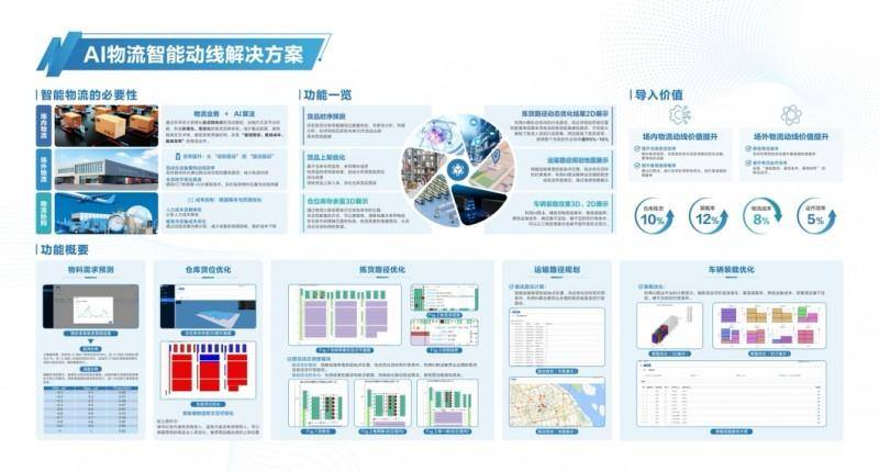 AI物流智能動(dòng)線解決方案是利用物聯(lián)網(wǎng)技術(shù)對(duì)物流中心及人員、貨物、設(shè)備和信息的移動(dòng)路徑進(jìn)行實(shí)時(shí)感知、智能規(guī)劃的集成化管理系統(tǒng)。系統(tǒng)涵蓋物料需求預(yù)測(cè)、倉庫貨位優(yōu)化、揀貨路徑優(yōu)化、運(yùn)輸路徑規(guī)劃及車輛裝載優(yōu)化等功能,不僅可提升倉庫揀貨效率與集裝箱裝載率,強(qiáng)化場(chǎng)內(nèi)物流動(dòng)線價(jià)值,還能通過降低物流成本,提高運(yùn)作效率,顯著提升場(chǎng)外物流整體價(jià)值。