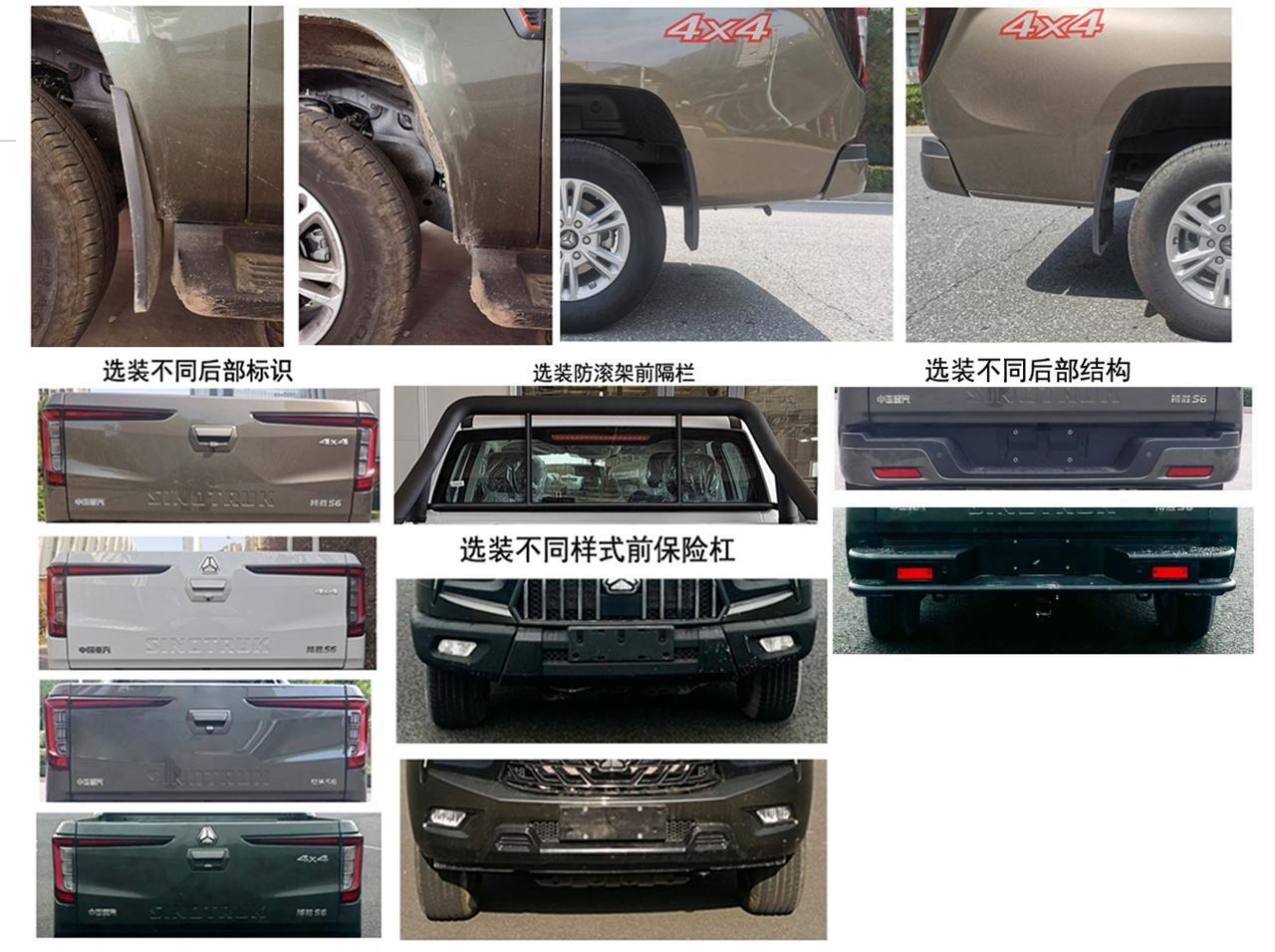 車身尺寸方面,該款皮卡長(zhǎng)寬分別有兩種選擇,分別為長(zhǎng)5645和5680mm、寬1895和1920mm,整車高度不變,均為1890mm。底盤為中國(guó)重汽的ZZ1037H352PF5BM12類底盤。