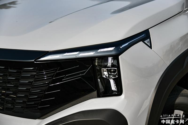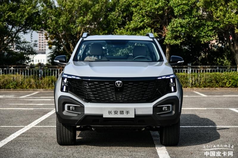 長安獵手車身長寬高分別為5380*1980*1875mm,軸距為3180mm,貨箱尺寸1600*1595*520mm。和大部分強(qiáng)調(diào)硬派風(fēng)格皮卡不同,長安獵手在外觀設(shè)計(jì)上采用獵動(dòng)設(shè)計(jì)語言,車頭中網(wǎng)設(shè)計(jì)與自家乘用UNI系列有異曲同工之妙,在整體的感覺上走的是時(shí)尚科技路線。